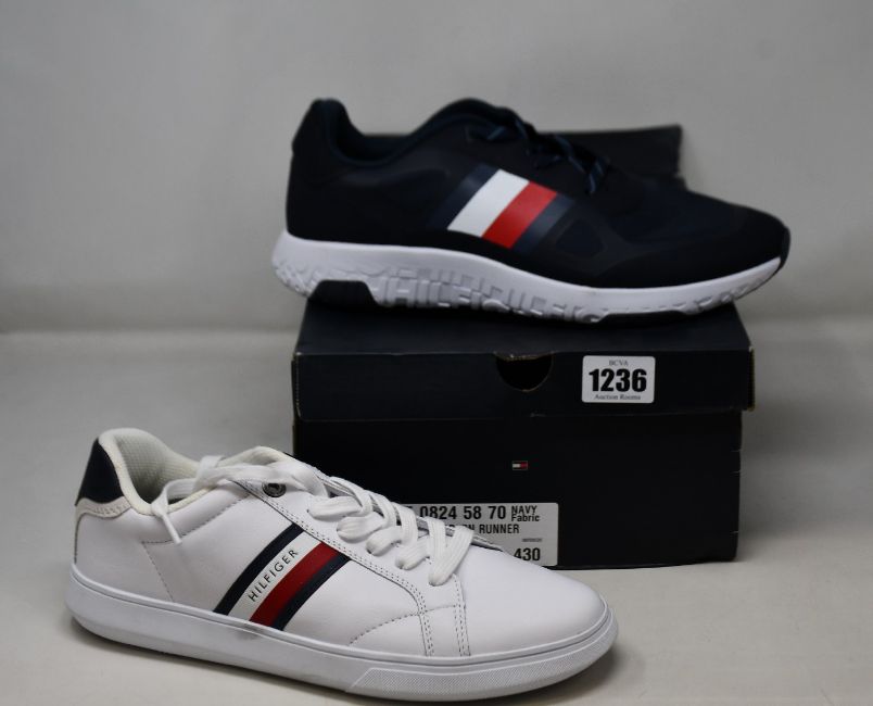Two pairs of as new Tommy Hilfiger sneakers; Essential Cupsole (UK 7) and Mix Modern Runner (UK 9).