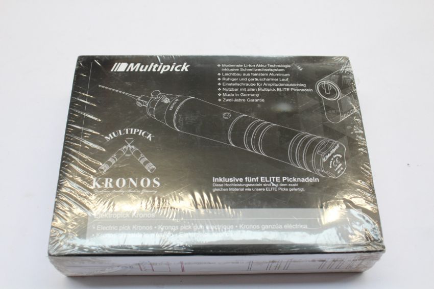 A boxed as new Multipick Kronos (Powerful electric lock pick gun with charger, allen key, Li-ion battery pack and pick needles).