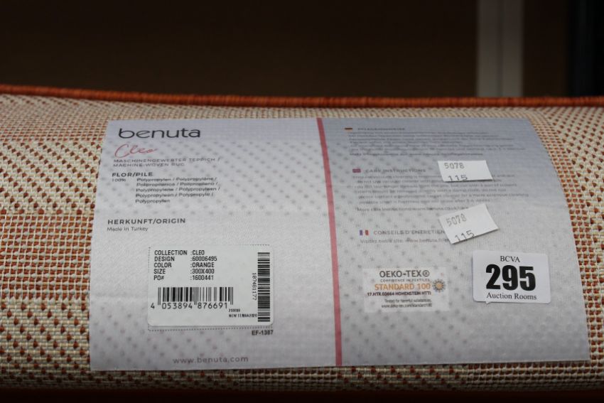 A Benuta Cleo indoor/outdoor machine woven rug in orange (300 x 400cm).