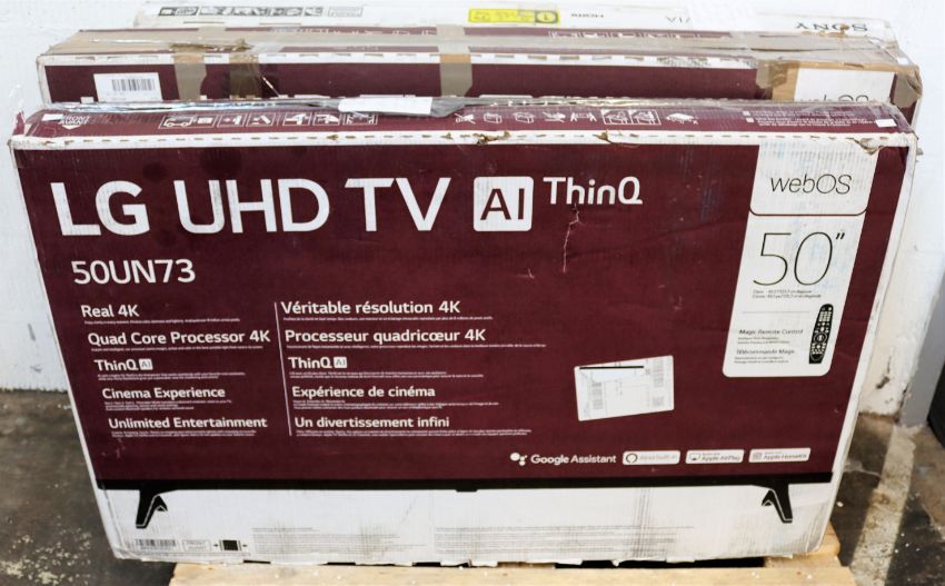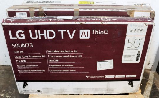 COLLECTION ONLY - SOLD FOR PARTS: A boxed LG 50UN73 UHD 50" TV (Damaged screen) with as new stand and remote and US power cable (Retail customer return - Sold as seen).