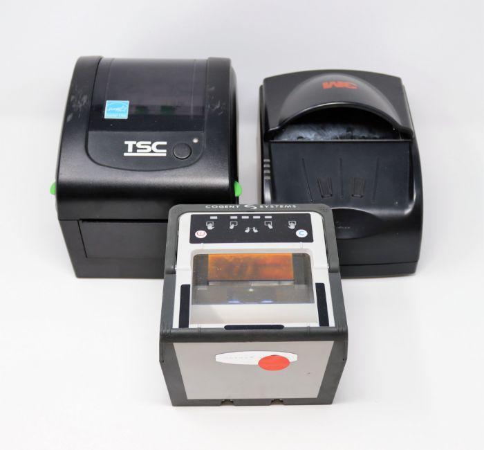 A pre-owned Cogent C500e Livescan Fingerprint Scanner, a pre-owned 3M AT9000 Passport/Full page ID Document Scanner (Power supply included) and a pre-owned TSC DA200 Desktop Direct Thermal Barcode Printer (Power supply included) (Tested, working).