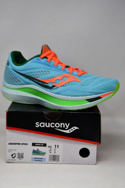 A pair of as new Saucony Endorphin Speed trainers (UK 10).