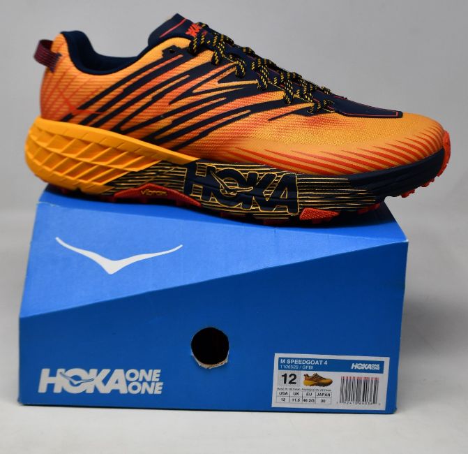 A pair of as new Hoka One One Speedgoat 4 trainers (UK 11.5).