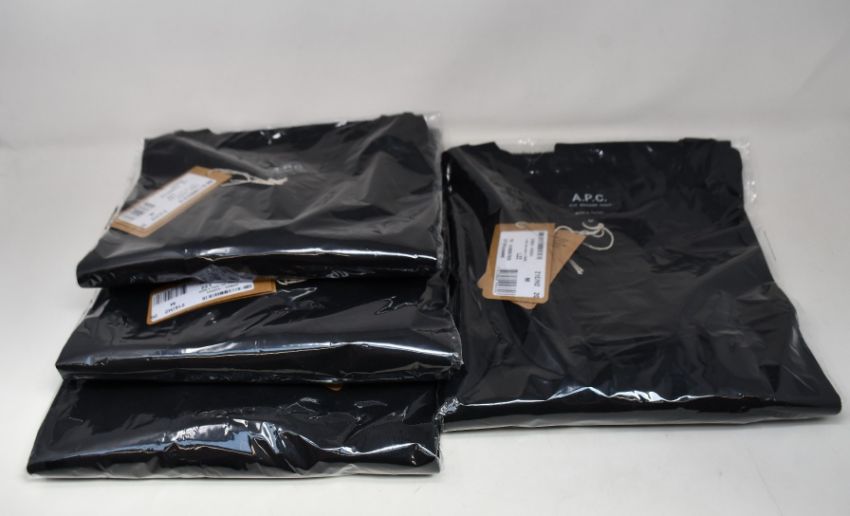 Four as new A.P.C. VPC logo T-shirts in black (All L - RRP £49 each).