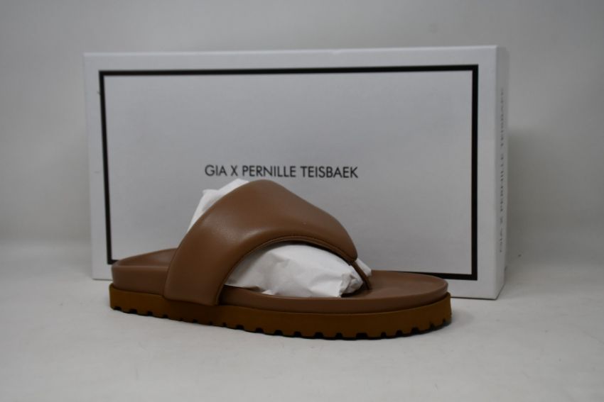 A pair of as new Gia x Pernille Teisbaek padded leather thong sandals in nude brown (EU 37 - RRP £191).