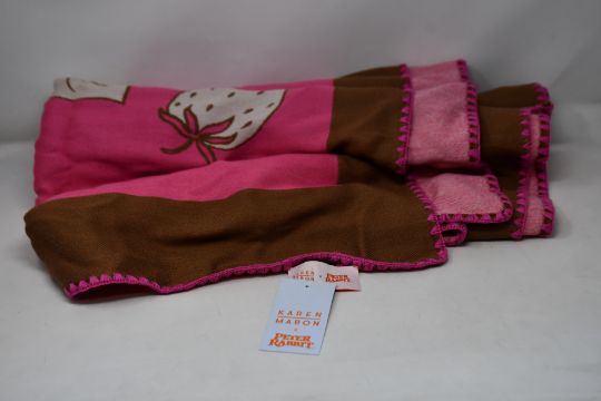 An as new Karen Mabon X Peter Rabbit woven raspberry blanket, part of a limited-edition capsule collection (180x180cm - RRP £258).
