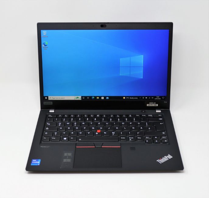 A pre-owned boxed Lenovo ThinkPad T14 14" laptop with Intel Core i7-1165G7 CPU, 32GB RAM and 512GB SSD in black (German keyboard layout) (power supply included).