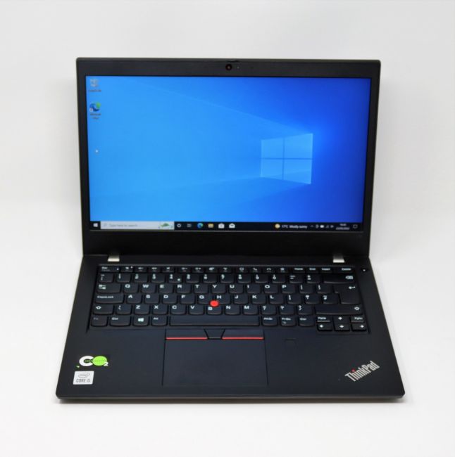 A pre-owned boxed Lenovo ThinkPad L14(Gen1) 14" laptop with Intel Core i5-10210U CPU, 8GB RAM and 256GB SSD in black.