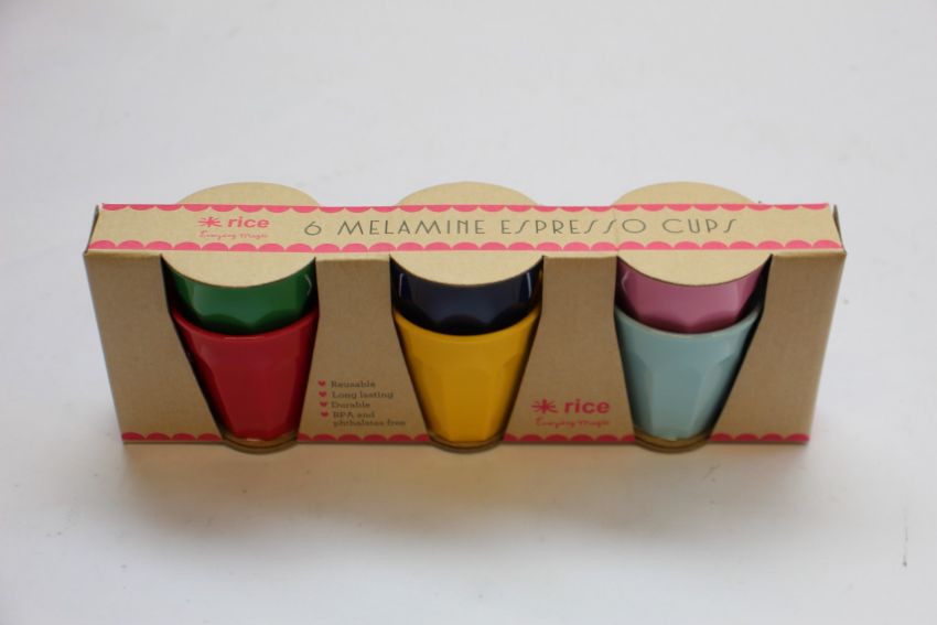 Six as new sets of Rice Melamine espresso cups (Six cups per set).