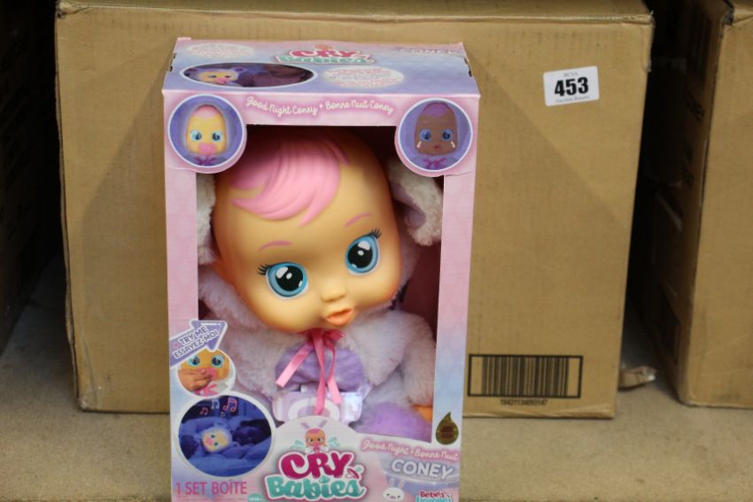 Eight boxed as new Cry Babies Good Night Coney children's dolls.