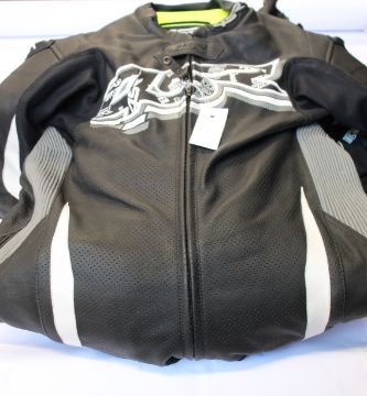 A 4SR Racing Power AR motorcycle racing suit in black (UK 42) and a pair of as new 4SR gloves (M), both as new.
