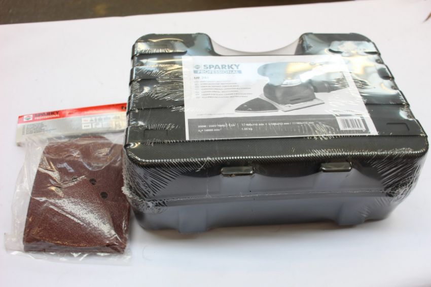 Five boxes of as new Sparky professional sanders (MP251) and ten packs of sparky sanding papers.