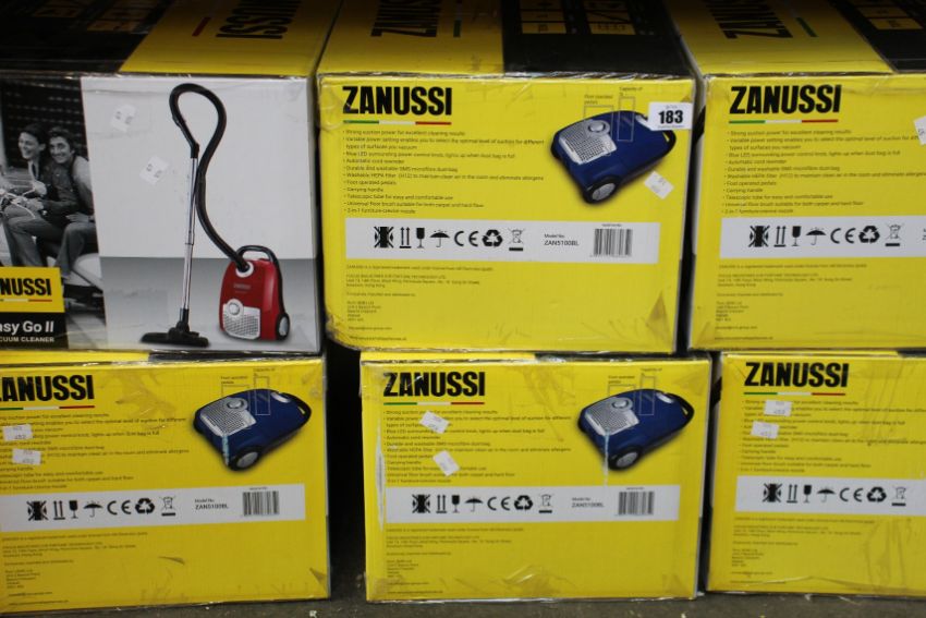 Nine new Zanussi Easy Go ll 3L, 700W, 7.5M radius retractable cord vacuum cleaner2 (3 x red, 6 x blue).