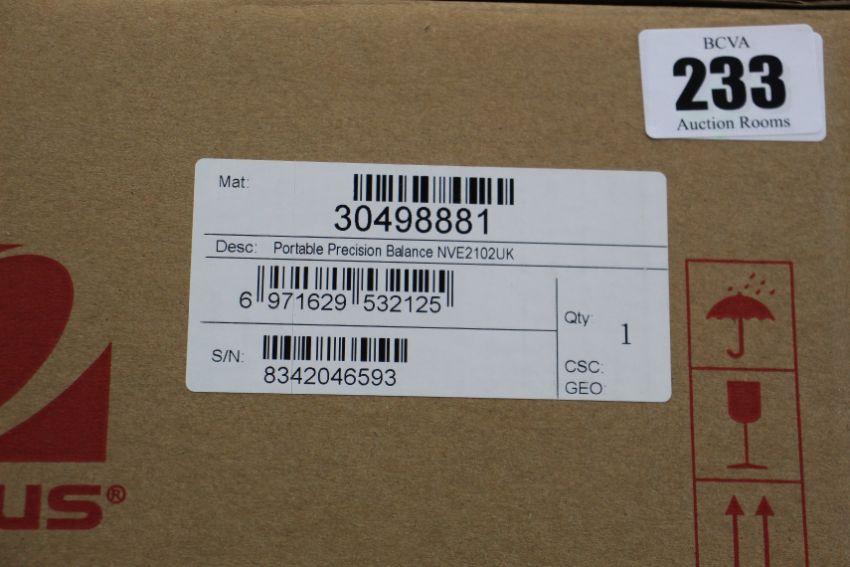 A boxed as new Ohaus Portable Precision Balance NVE2102UK.