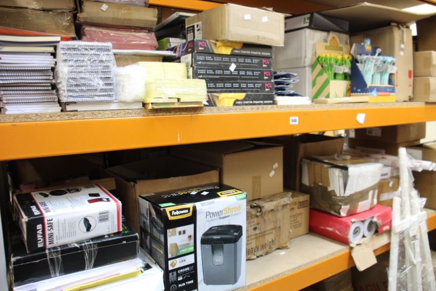 A large quantity of stationery, office/craft supplies and related to include a two drawer filing cabinet and Puckator novelty pens.