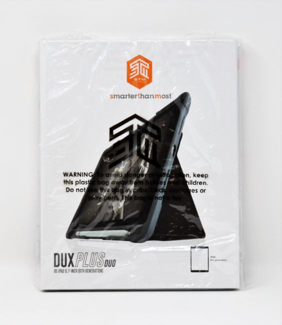 Ten boxed as new STM Dux Plus Duo Cases for 9.7" Apple iPad 5th & 6th Gen in Black (Individually sealed).