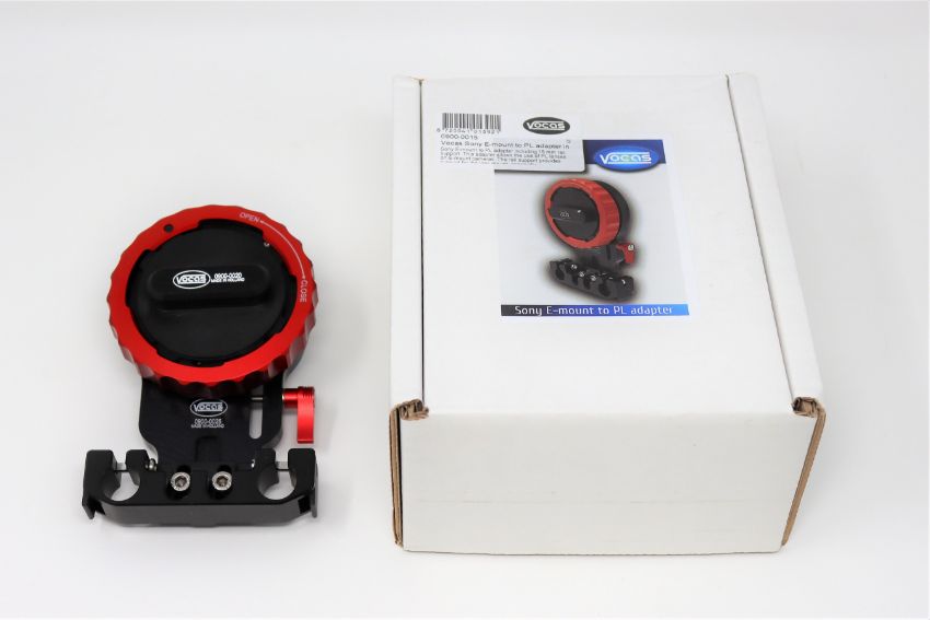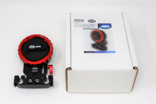 A boxed as new Vocas Sony E-mount to PL adapter including 15 mm rail support (P/N: 0900-0015).