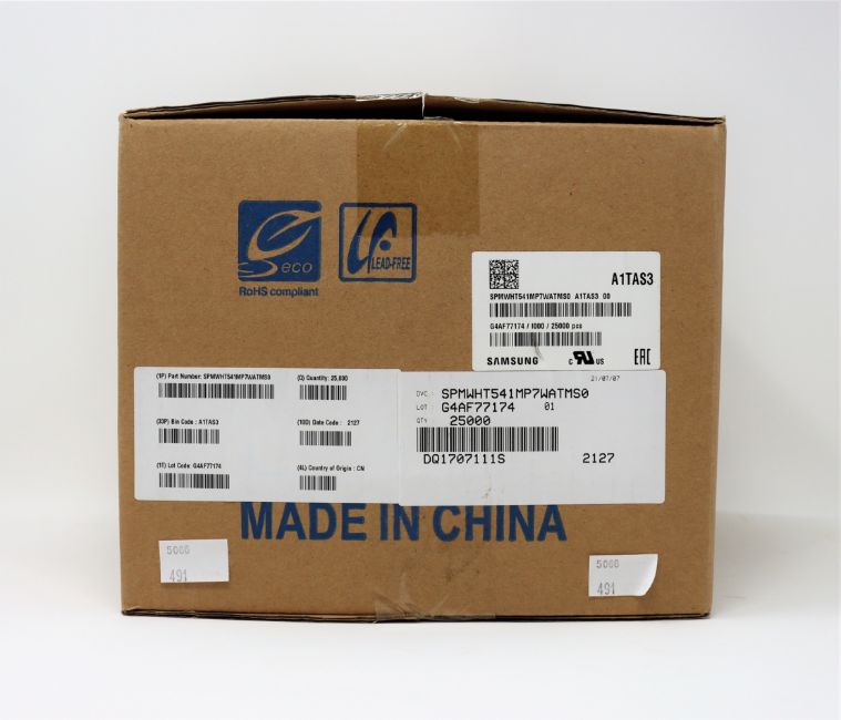 Ten as new reels of 2500 Samsung SPMWHT541MP7WATMS0 White Neutral 4000K 2.95V 65mA 120° 4-SMD Flat Lead LEDs (Boxed, packaging sealed. Inspection sheet included).