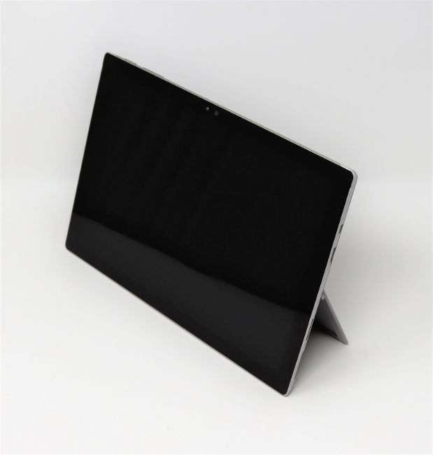 FAULTY - SOLD FOR PARTS - A pre-owned Microsoft Surface Pro 4 (model: 1724) with Intel Core M3-6Y30 CPU, 4GB RAM and 128GB storage in platinum silver (touchscreen unresponsive - lower centre) (small bright spot on screen corner).
