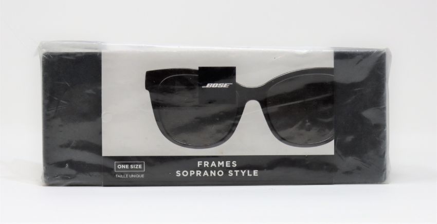 A boxed as new pair of Bose Frames Soprano Bluetooth Audio Sunglasses in Black (One size) (Box sealed).