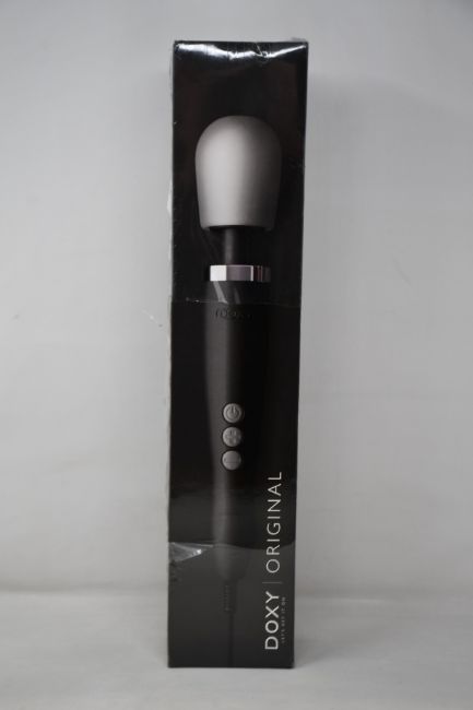 A boxed as new Doxy plug-in vibrating wand massager - black.