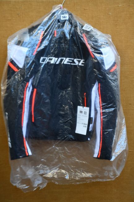 An as new Dainese Racing 3 leather jacket in Black/White/Fluo-Red (Size: 52).