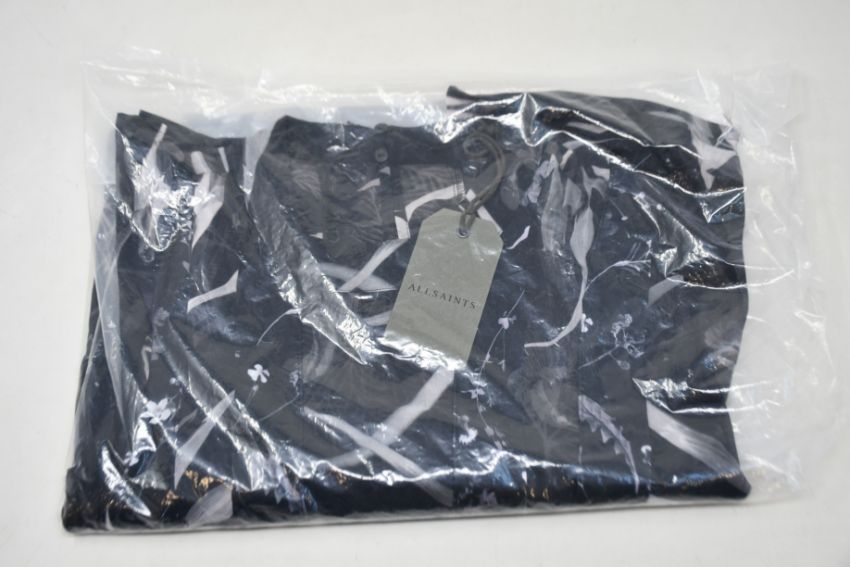 An as new All Saints Fleur Rutland dress in black (UK 14).