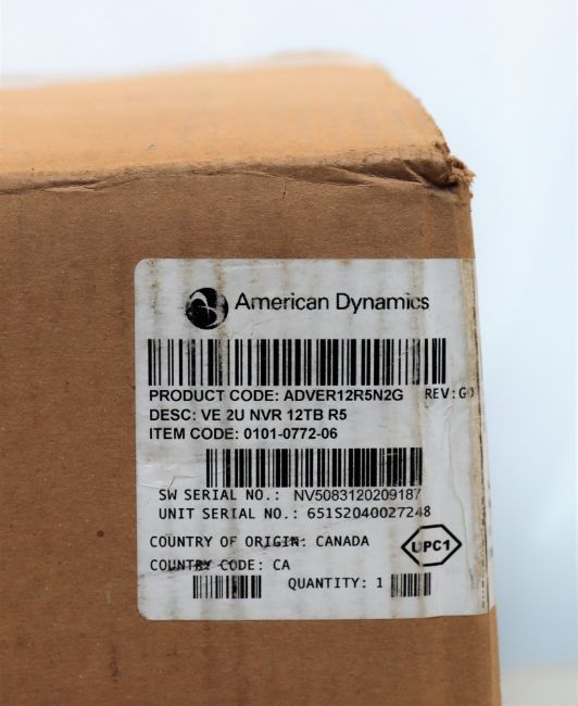 COLLECTION ONLY: A boxed as new American Dynamics VideoEdge 64 Channel 2U 12TB RAID 5 Network Video Recorder (M/N: ADVER12R5N2G) (Box opened, some dmamage to box).