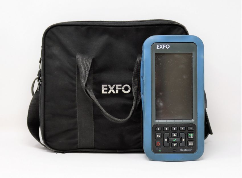 A pre-owned EXFO MAX-630 MaxTester DSL ADSL ADSL2+ Tester in carry bag (P/N: MAX-630G-GVXAA) (Power adapter and cable included) (Powers on, not further tested. Sold as seen).