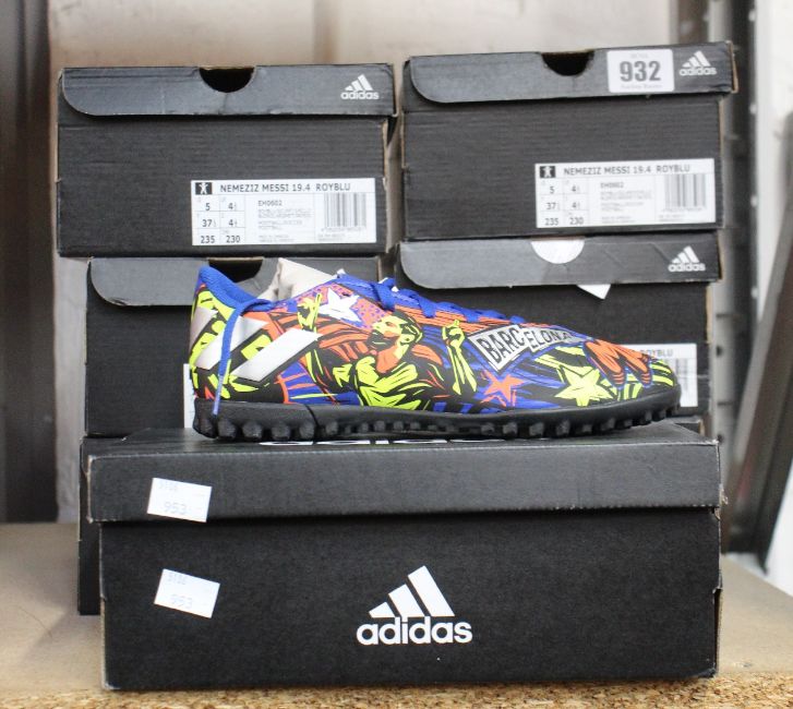 Seven pairs of children's as new Adidas Nemeziz Messi 19.4 turf trainers (Assorted sizes).