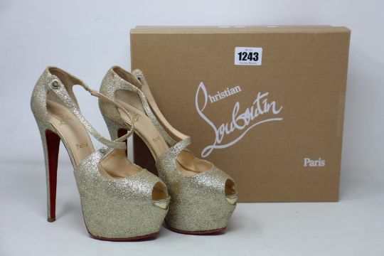 A pair of pre-owned Christian Louboutin Exagona 160 glitter mini shoes (EU 38.5 - Good condition, some red marks on glitter whilst shoes in storage, soles exceptional).