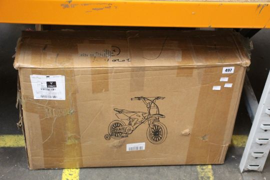 A MEACool Kids motorbike in red and white (NOTE: This item may be damaged or incomplete, viewing is recommended).