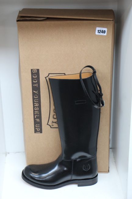 A pair of as new Embossy American leather riding boots for motorcycle or horsemen (Size unknown UK 8-9? - RRP €309).