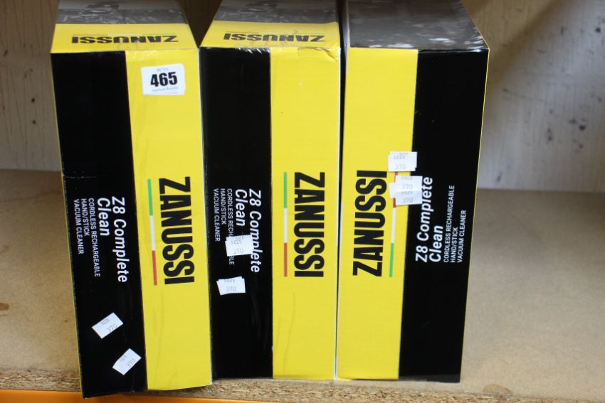 Three new Zanussi Red Z8 Complete Clean cordless rechargeable 400W, 0.05L foldable vacuum cleaners (ZANXZ251).