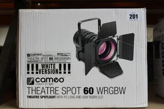 A Cameo Theatre Spot 60 WRGBW - White Version (Theatre spotlight with PC lens and 60W RGBW LED in white housing).