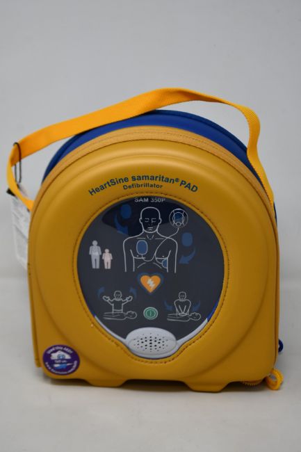 A HeartSine Samaritan PAD 350p defibrillator.