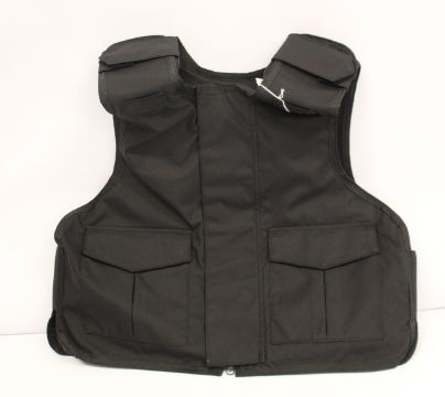 A Safe Guard Armour Patrol 1 tactical armour vest in black, with a detachable 'Public Safety' velcro patch (Size: L).