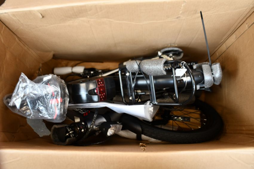 A Furo X Folding Electric Bike in black (Note: This item has not been assembled and may be incomplete or slightly damaged, viewing is recommended).