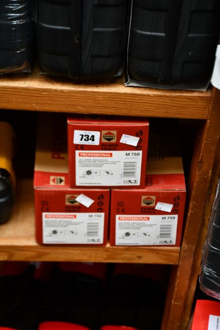Three boxes of as new Sparky professional angle grinders (M750).