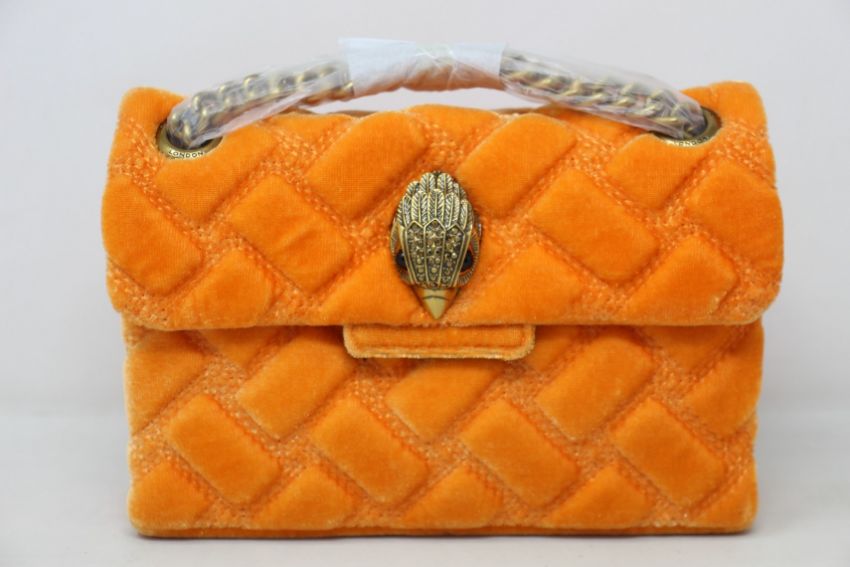 An as new Kurt Geiger Velvet Mini Kensington bag in orange.
