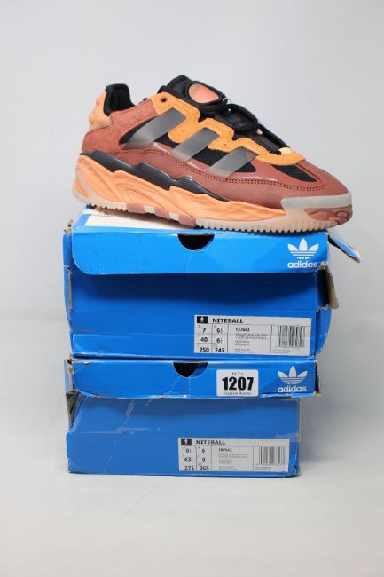 Two pairs of as new Adidas Niteball trainers (UK 6.5, 9).