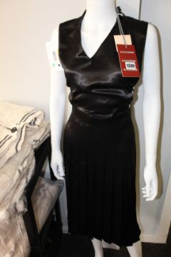 An as new Alexa Chung black pinafore dress in lustrous satin (Size 6).