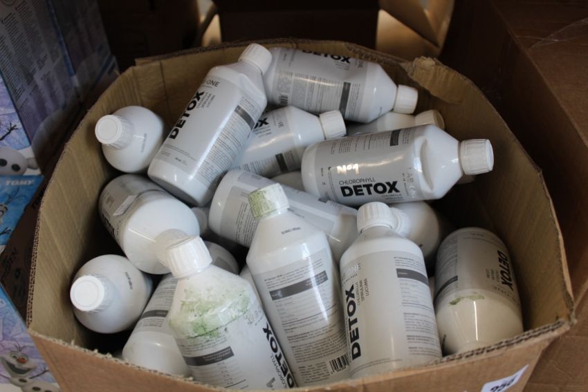A large quantity of Lab One Chlorophyll Liquid Detox, Spirulina, Chlorella, Lacuma (Approximately 40 x 500ml, 03/23).