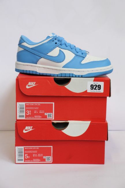 Two pairs of youths as new Nike Dunk Low GS (UK 3, 4.5).
