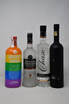 Three bottles of Absolut vodka (1ltr), a bottle of Five vodka (700ml), a bottle of Chase vodka (700ml) and five bottles of Russian Standard vodka (700ml) (Over 18s only).