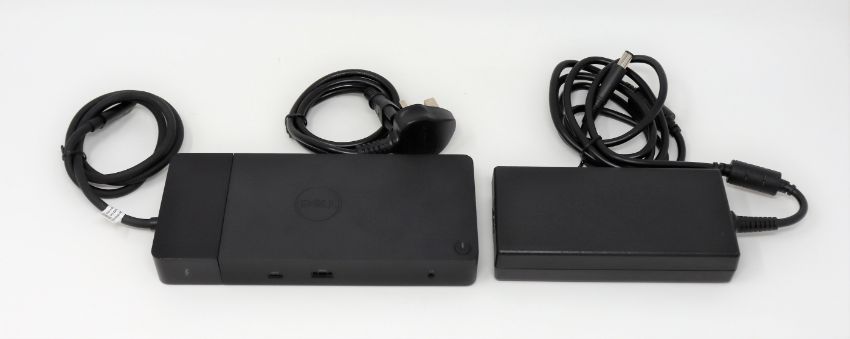 A pre-owned Dell WD19TBS thunderbolt docking station with 180w power supply.