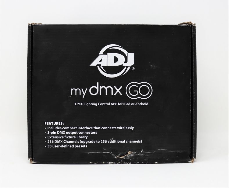 A boxed as new ADJ MyDMX GO DMX Lighting Controller (Box sealed, some damage to box).
