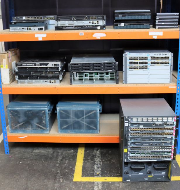 1 x Cisco WS-C6508 with 1 x WS-SVC-WiSM-K9, 1 x WS-SUP720-GE-TX, 2 x WS-SUP720-3BXL, 1 x WS-X6748-SFP, 1 x WS-X6708-10GE, 1 x WS-X6148-GE-TX, 2 x PSU