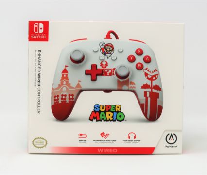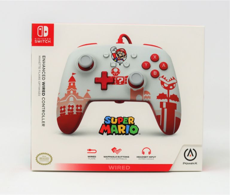Four boxed as new PowerA Enhanced Wired Controllers for Nintendo Switch in Mario Red/White (Boxes sealed).