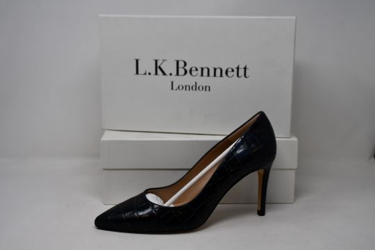 Two pairs of as new L.K.Bennett Floret shoes in teal croc effect (EU 38 - RRP £229).